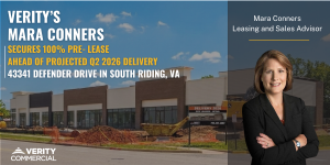 Verity Commercial announced that its newest retail/mixed‑use commercial development 43341 Defender Drive in South Riding, VA, has been fully pre‑leased, marking a significant milestone for the rapidly growing Route 50 corridor. The project, which offers 11,655 square feet of space, achieved full occupancy prior to construction completion. Mara Conners, Verity Commercial Real Estate Professional,… Read More
